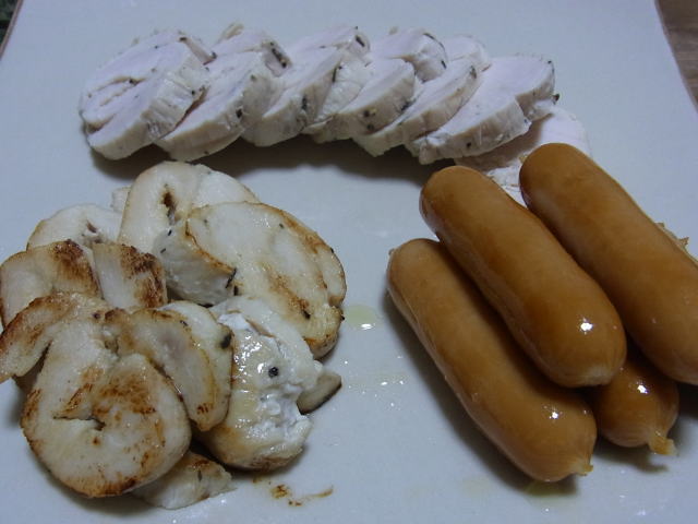 スライスしてそのままと、軽く焼いたものと、冷蔵庫に余っていたウィンナーとで酒の肴の完成。