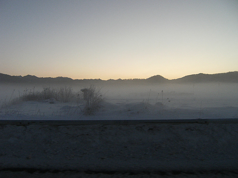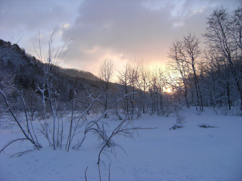 朝もやと雪のコントラストが幻想的な・・・