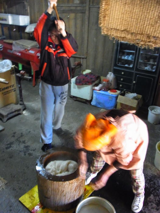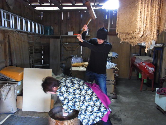 ボーっとしてても、ただ平和な一家の餅つきの邪魔をしに来ただけになってしまうので、私も杵を手に取り・・・