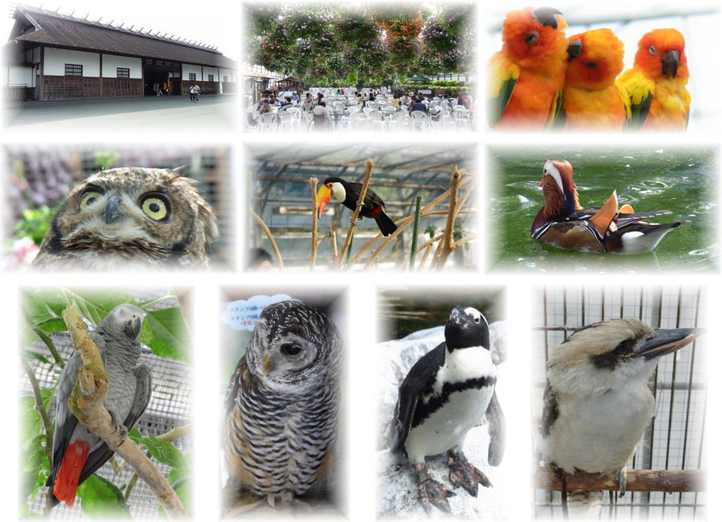 【様々な鳥が迎えてくれます。 入り口に居たフクロウ、置物かと思ったら旧に動いたのでビックリ。 いろいろと鳥たちとも触れ合える珍しい施設です。 途中でデジカメの電池がなくなって(´・ω・`) としていたのは秘密ですが】