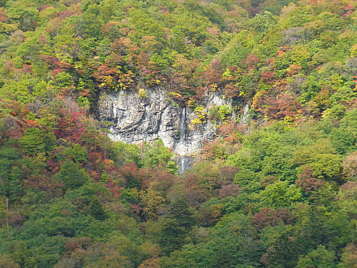崖から突然湧き出ているような滝で紅葉と相まって綺麗な滝です。