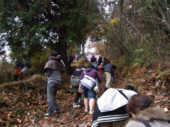 参道は 山道であり参道(参った道)でした・・・ 山に登る道なので結構傾斜が強い で 雨で石畳は泥に塗れ滑る滑る。 片道1.6キロの上り坂をヒーヒー言いながら登る。